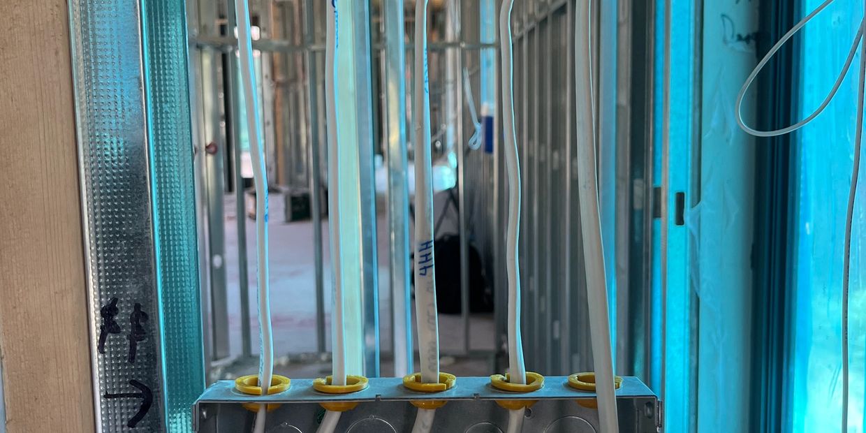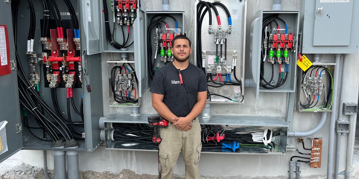 Superintendent Manuel Uribe III completing a 600amp service connection with a set of parallel feeds sized at 600kcmil.