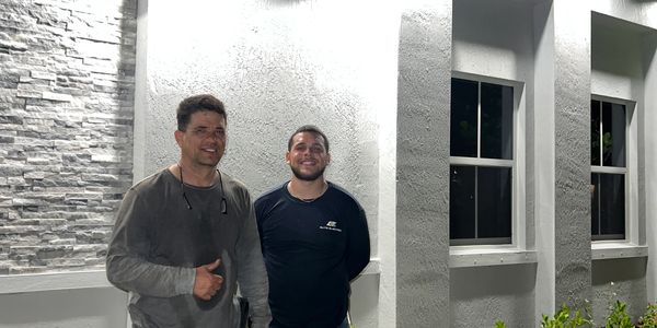 Our team members finishing exterior recessed lighting, totaling to about 32 hi hats as we like to call them... plenty of wiring and splicing!